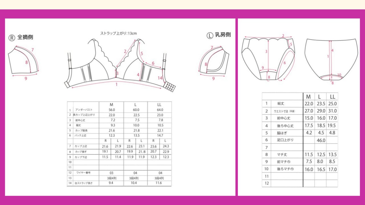乳房がある側は立体的なカップとワイヤーで支え、美しいバストラインをサポートします。